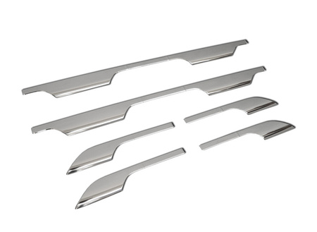 Pochrómované vonkajšie prahové lišty dodajú eleganciu a zdôraznia jedinečný charakter vášho auta. Pásy sú vyrobené z najkvalitnejšej nehrdzavejúcej ocele, odolné voči poveternostným vplyvom. Pozornosť venovaná najmenším detailom robí náš produkt elegantným v každom ohľade.
