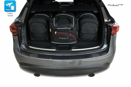 Najväčšou vlastnosťou, ktorou sa cestovné tašky KJUST odlišujú od iných výrobkov, je ich neobvyklý dizajn. Tašky sú na jednej strane skosené, vďaka čomu senzačne zapadajú do skosených stien batožinového priestoru.