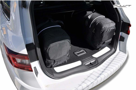 Najväčšou vlastnosťou, ktorou sa cestovné tašky KJUST odlišujú od iných výrobkov, je ich neobvyklý dizajn. Tašky sú na jednej strane skosené, vďaka čomu senzačne zapadajú do skosených stien batožinového priestoru.