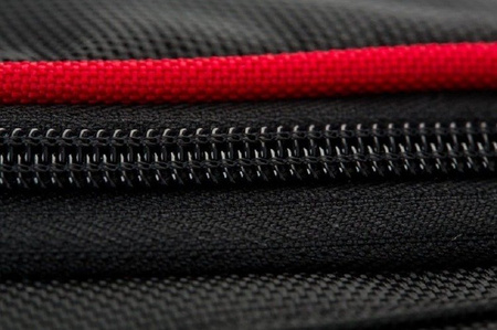 Materiál je pružný, nepremokavý a veľmi odolný. Popruhy sú vyrobené rovnakou technológiou ako bezpečnostné pásy.