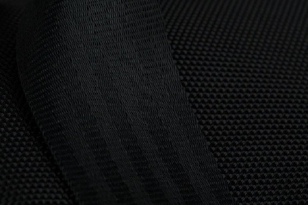 Materiál je pružný, nepremokavý a veľmi odolný. Popruhy sú vyrobené rovnakou technológiou ako bezpečnostné pásy.